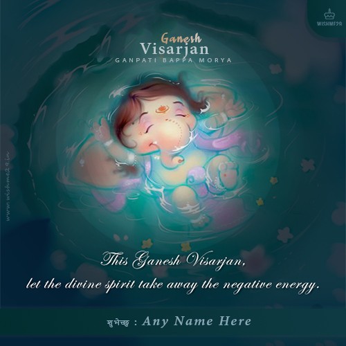 Greet your friends, family members and relatives with write name on Ganesh visarjan image greetings writing name on it is really very easy and you can easily generate these images. This www.wishme29.in will help you to get the best greeting for the Ganesh visarjan.